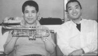 この頃から英二郎は父のバンドの準レギュラーとなり、学業に差し障りのない限り父のバンドのステージに上がって演奏をしている。![]() ジャックTガーデンのレコードコピーをマスターしてからは、ディキシーランドジャズ関係ではコピーの対象にするプレーヤがいなくなった。ジャックTガーデン以降のトロンボーンプレーヤーというと、カール・フォンタナ(1928〜2003)、ビル・ワトラス(1939〜)、超絶なテクニックの持ち主ばかりだ。カール・フォンタナなどになると、メトロノーム四分音符にして360〜400のスピードで吹きまくるプレーヤーだ。これは、コピーする父も大変だが、それを演奏する英二郎はもっと大変だ。しかしこれも難なくクリア。 いよいよコピー対象をのプレーヤーがモダンジャズトロンボーンの神様、JJジョンソン(1924 〜2001)に突入だ。JJジョンソンといえば「J&K」といって2トロンボーンで一世を風靡している。一方の「K」の方だがカイ・ウィンディング(1922〜1983)といってJJジョンソンと合い並び双頭といわれた名人だ。このレコードからコピーすれば一度に二人のプレーヤーを勉強できる。 当時来日中だったこの二人のプレーをコピーした。曲目も「イッツ・オーライ・ウィズミー」とても通常の小学生では演奏できる曲ではない。 この曲も三日間ででほぼ全曲暗譜をした。早速ステージのオファーがある。「シャープス&フラッツ」のソロトロンボーンプレーヤー粉川との競演が実現した。こうなると緊張するのは粉川の方だろう。後ろで聞いていた人も「どちらがどちらだか、分からない」というほどの評判だった。この時小学六年生。父と初レコーディングもこの年。 この評判は日本だけにとどまらず、次の年にアメリカはサクラメントでワイルド・ビル・デビソンと共演している。 これだけジャズをやっていてもクラシックのレッスンも怠ってはいない。高校進学も東京芸大附属高等学校一本にしぼり、一般の勉強もさることながらピアノ、ソルフェージュ、楽典等、超多忙な中学生活に突入だ。 中学3年の時に初めてスタジオミュージシャンとしてスタジオの仕事をしている。このときばかりは、頼まれた英二郎より、頼んだインぺク(ブッキングする人)の方が緊張したと後で語っている。 ジャズトロンボーンプレーヤーのレコードコピーもJJジョンソンの後は、もういないというところだったが、もう一人大変な大物がいた。フランク・ロソリーノ(1926〜1978)、この人こそ二十世紀最後の大物トロンボーンプレーヤーだ。前述のカール・フォンタナを一回り大きくしたようなプレーヤーである。 そのすごさは「筆舌に尽くしがたい」とはこのことといえるだろう。今までの常識を大きく破り、このロソリーノを越なければ英二郎は世には出られないだろう。結論からいうともちろんすべてのテクニックをマスターした。 東京芸大附属高校にも無事に入学が出来、スタジオ活動も本格的になった。そんな折りジャズのレコーディングが決まった。若手ばかりのミュージシャンによるレコーディングだ。この時少々問題が持ち上がった。ほかのメンバーはかなりモダンなのだ。英二郎といえばディキシーランドジャズ、スイングジャズ、モダンジャズとはいえJJジョンソンまでしか聞いたことがない。いかにJJジョンソンとはいえ時代の違いは感じられる。 ディキシーランドジャズしかやったことのない「英二郎には無理か」 世の中うまくしたもので、そんなときボストンのバークレー音楽大学の夏期聴講生として招待されたのである。ここでめいっぱい新しいジャズの手法を学んだ。 「変わった!!。」 英二郎が大きく変わった。元々下地はあったのだろうが、夏の間の短い期間だけでモダンジャズをマスターできるというのは、本人の持っていた才能だろう。 レコーディングは無事終了。このレコードを一枚で英二郎の音楽人生が大きく変わっていく。 この年(16才)にレコード会社では大手のキングレコードと専属契約を結んだ。すぐさまニューヨークに飛び初のリーダーアルバムの作成だ。 こうなるともう人のまねは許されない。英二郎自身のオリジナリティーを出さなくてはならない。 ![]() しかし、このレコーディングも大変評判になった。いきなりジャズ紙スイングジャーナル人気投票でいきなり二位に登場する。またこの年日本のテナーサックスの大御所、松本英彦と競演している。 高校生の英二郎にとってジャズが楽しいといえども大学入試が待っている。ジャズが少々出来ても大学に入れてもらえない。ねらいは東京芸大一本。学生生活最後の難関といって良いだろう。全国のトロンボーンの中から3人しか入れない。国立大学はセンター試験という音楽以外の勉強もかなり出来なくてはならない。といいながらもジャズクラブ通いは相変わらずだ。 高校入試の時と同じく、クラシックトロンボーンはもちろん、ピアノ、ソルフェージュ、楽典、英語、国語の2科目、寝ている間があったのだろ