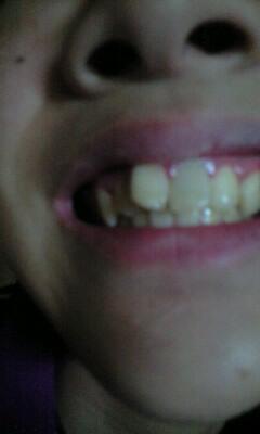 > >上の前歯の右側だけ飛び出していて歯並びが悪い。