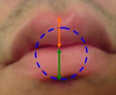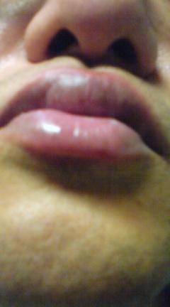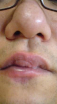 三枚目は、その奏法で少なからず慣れてきた後の唇の画像です。マウスピースからの圧力が、ほとんど皮膚部分に当たっているので、吹いた後すぐに撮影しても形が残りにくいです。